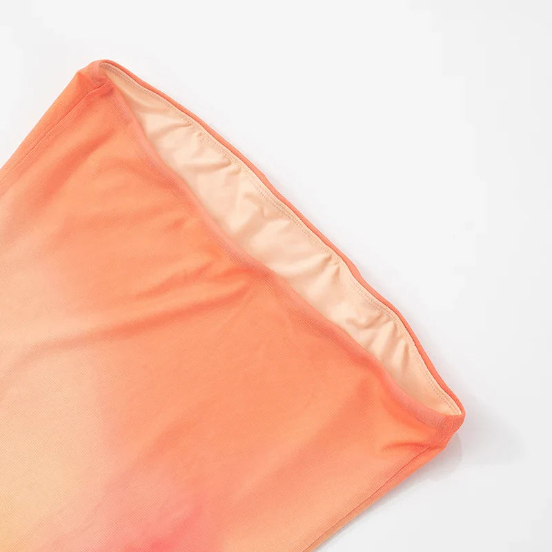 Sunset hues meet minimalist glamour in the Velia Maxi Dress — a strapless silhouette that feels like a golden hour escape. With fluid color washes in warm orange, coral, and lemon, it clings just right while letting you glide through summer scenes effortlessly.